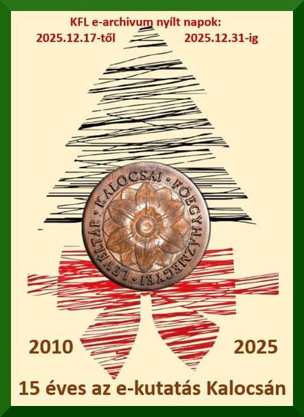 A közelmúltban volt 15 éves a Kalocsai Főegyházmegyei Levéltár (KFL) e-kutatás szolgáltatása. Az alkalomból 15 napos nyílt (ingyenes) hozzáférést biztosít a levéltár az online tartalomhoz, a közelgő ünnepek idejére - 2025.12.17 - 2025.12.31